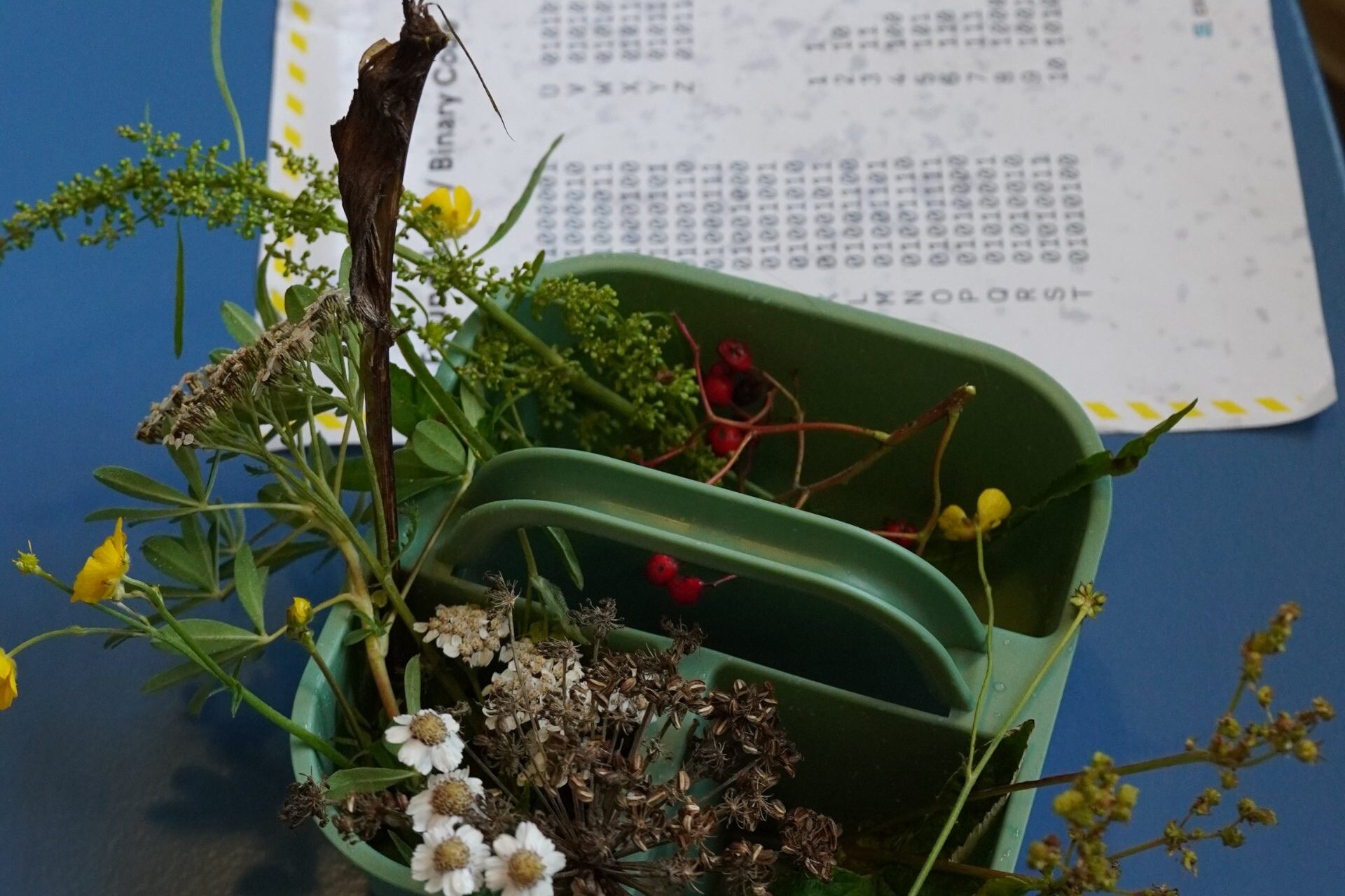 Á vinnustofunni læra þátttakendur um tvíundakerfið (Binary code) og gagnaveituna (Fiber optic network) og nota hluti í náttúrunni til að gera listaverk með leyndum skilaboðum. Velt verður upp spurningum um hvernig má nýta stafróf/táknkerfi/mynstur í kennslu ólíkra viðfangsefna.
